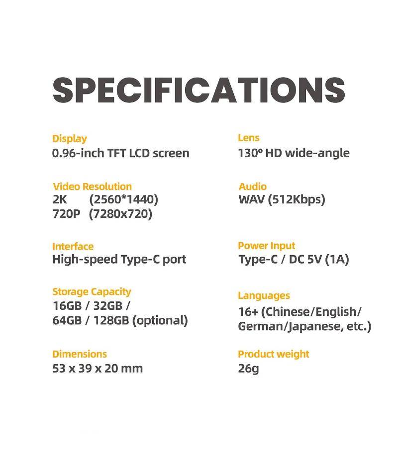 - Packing list: 1*Thumb Camera; 1*Type-C Cable; 1*USE Manual; 1* Short Chain