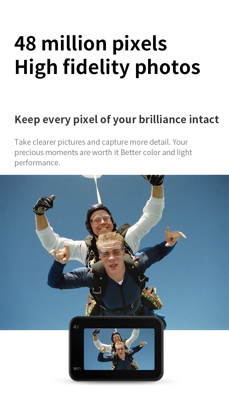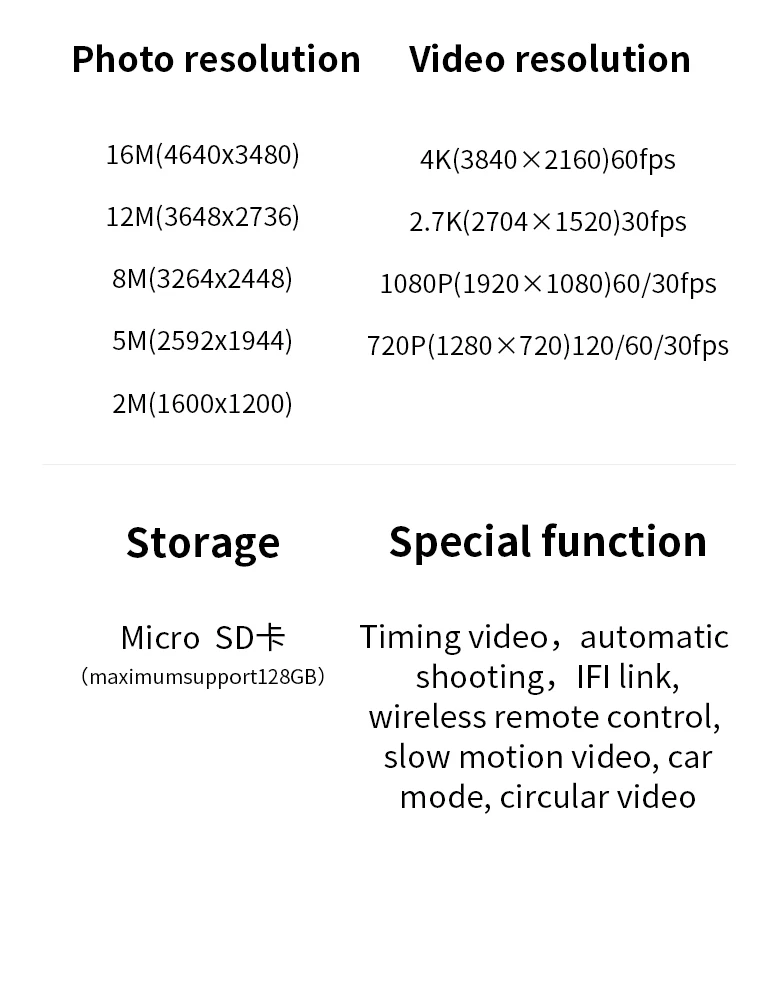 • 4K wide-angle enhanced lens 1/2 inch 48MP image sensor, can shoot 4K 60fps video.