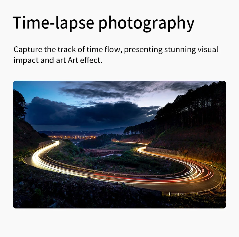 • Support the delay of taking photos from the sunset to the stars, the day to night changes of light and shadow condensed moment, exquisite presentation.