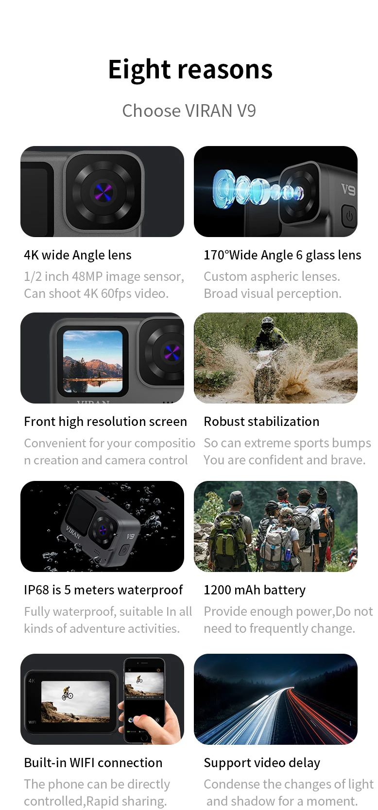 4K 60FPS Action Camera for Cycling Motorcycle – V9