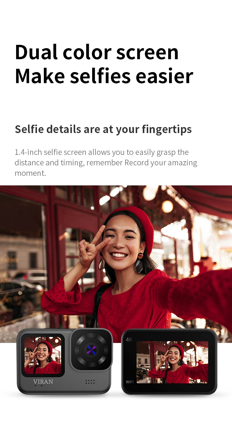 • LCD Size: Home screen 2.0 inches HD touch screen selfie screen 1.4IPS HD screen