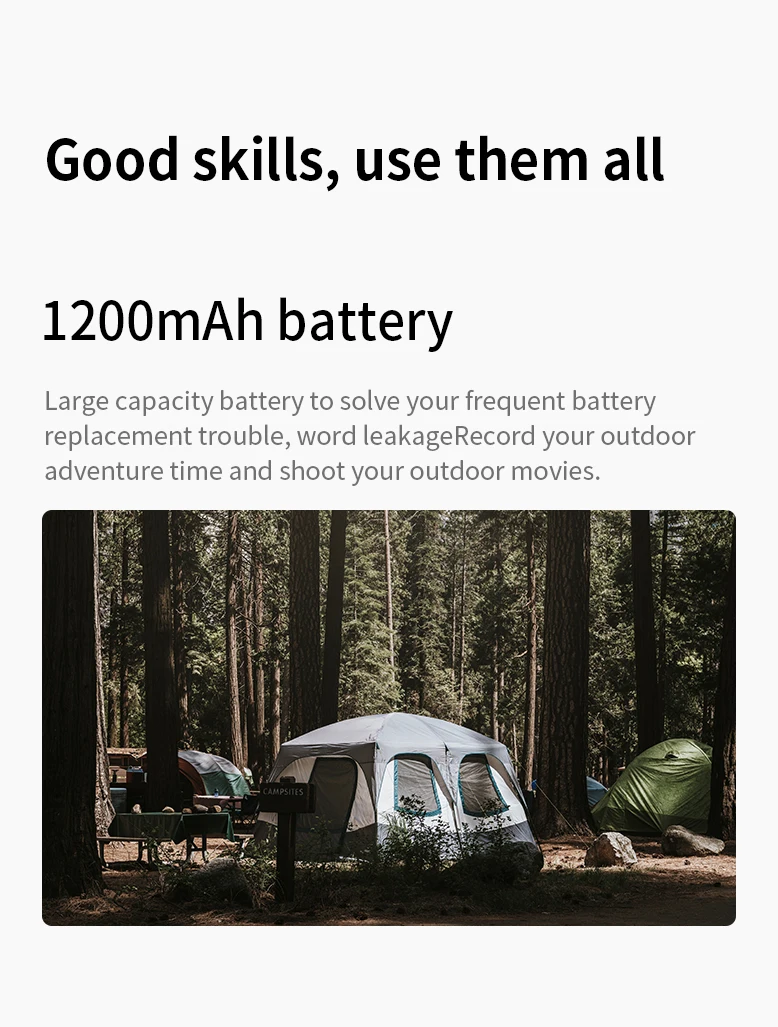 • 1200mAh large-capacity battery provides sufficient power, longer shooting time without frequent battery replacement.